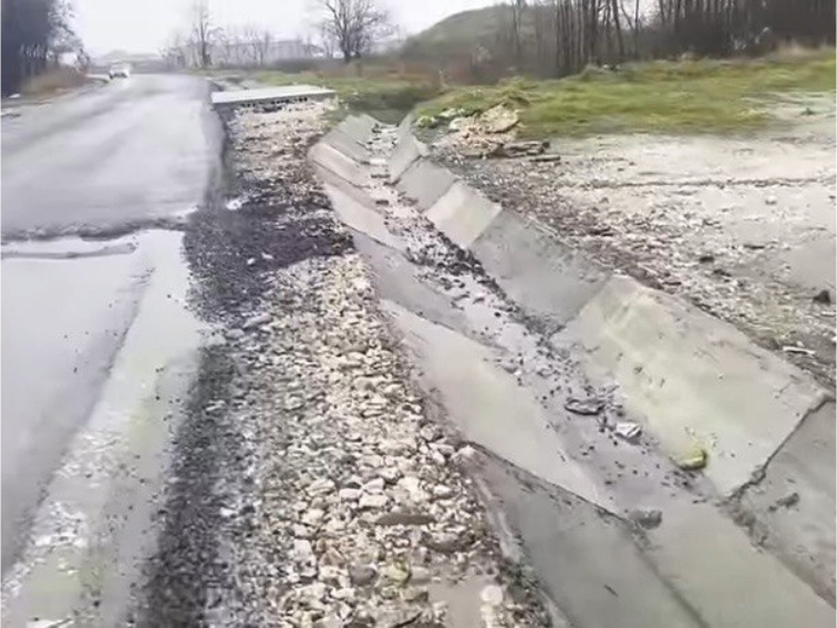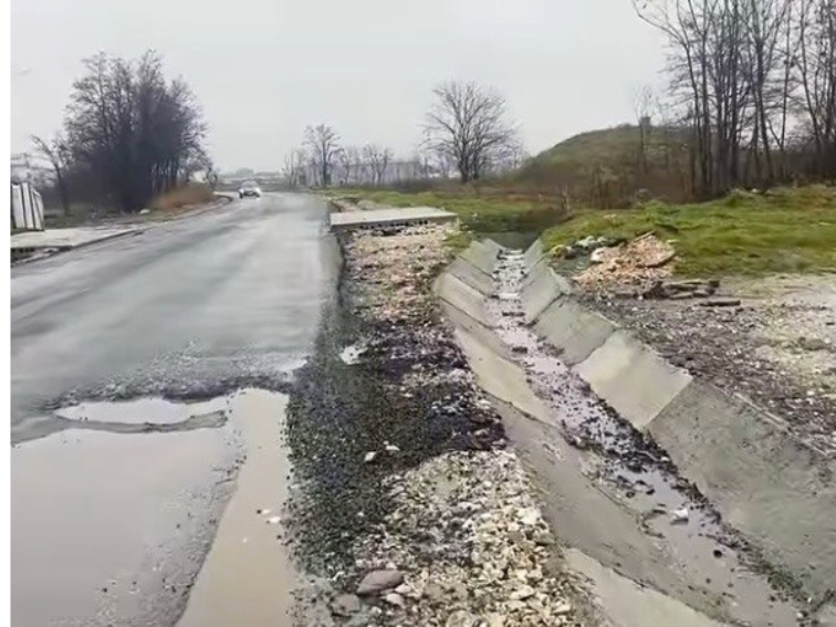 Освен това няма обезопасяване към канавките отстрани на пътя, ако се наложи да се отбие е опасно и невъзможно.